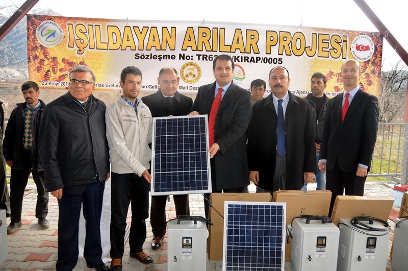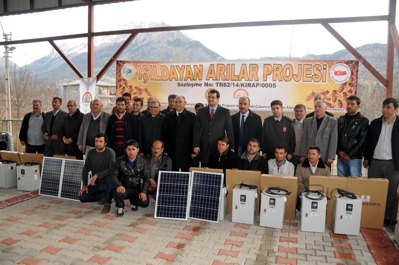 Çukurova Kalkınma Ajansının 2014 mali yılı destek programı bünyesinde Adana İli Arı Yetiştiricileri Birliği ile İl Müdürlüğümüzün ortak hazırlayıp sunduğu “Işıldayan Arılar” projesi kapsamında 21 adet solar sistem güneş enerjisi paneli Pozantı ilçemizdeki Arı Yetiştiricileri Birliğine kayıtlı gezginci arıcılara teslim edildi..