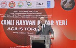 Türkiye genelinde 8 ilde uygulanan Kırsal Dezavantajlı Alanlar Kalkınma Projesi kapsamında yaptırılan Canlı Hayvan Pazar Yeri'nin açılışı sebebiyle düzenlenen törende konuşan Adana İl Tarım ve Orman Müdürü Mehmet Nuri Kökçüoğlu, pazarın Türkiye geneli örnek projeler içinde yer aldığını ifade ederek, "Kırsal Dezavantajlı Alanlar Kalkınma Projesi kapsamında yapımı tamamlandı. Bu tesis milletvekillerimizin önerisi ile bakanlığımız tarafından hayata geçirilmesi ile bölge üreticilerimize fayda sağlayacak önemli bir tesisimiz oldu" dedi.