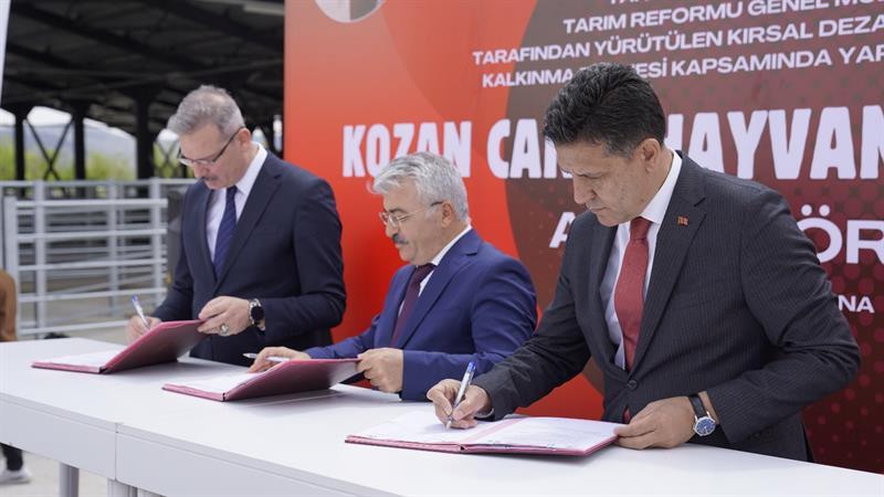 Törende daha sonra hayvan pazarını tanıtan sinevizyon gösterimi yapıldı ve pazar yerinin Kozan Belediyesine Devir Teslimi için hazırlanan protokole imzalar atıldı. Canlı Hayvan Pazar Yeri'nin açılış kurdelasının kesilmesinin ardından hayvan pazar yeri gezildi.