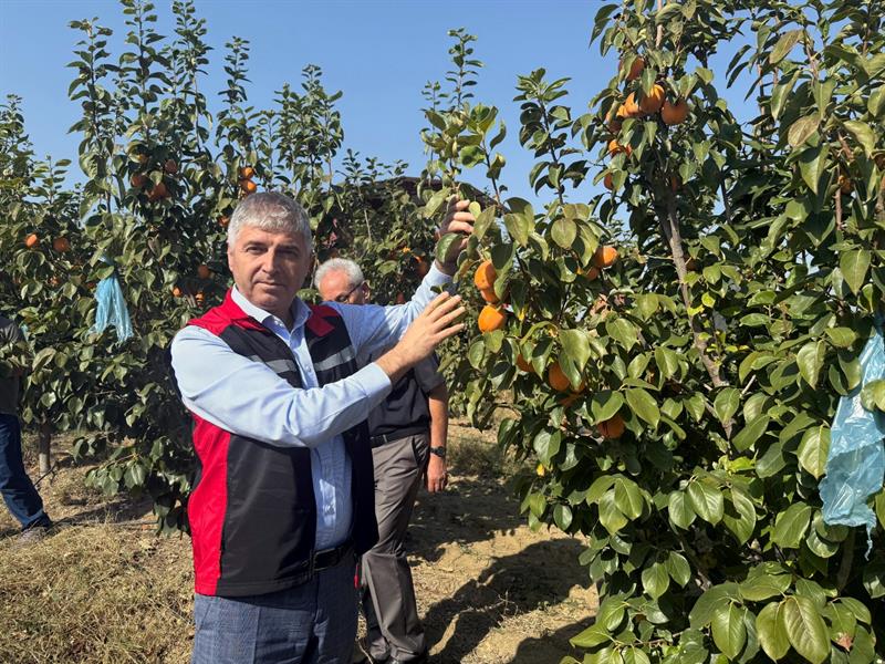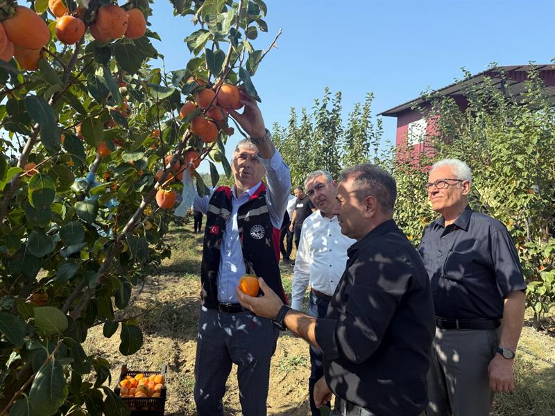 Ziyaret programı kapsamında ilk olarak Tepecikören Mahallesi'nde Türkiye üretiminde birinci sırada yer aldığımız Trabzon hurması hasadına katılan İl Müdürü Bayazıt, üreticilerden yetiştirme süreci, hasat ve pazarlama konularında bilgi aldı. Üreticilere bereketli bir sezon dileyen Bayazıt, ilimizin bu alandaki üretim başarısının sürdürülebilirliği açısından çalışmaların önemine vurgu yaptı.