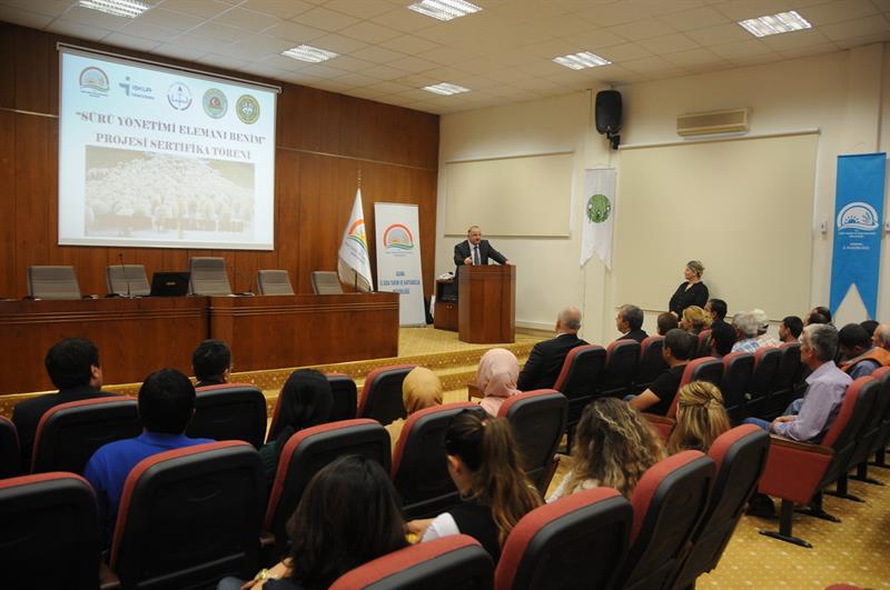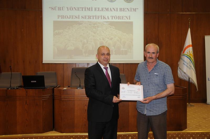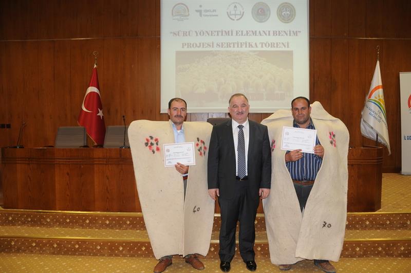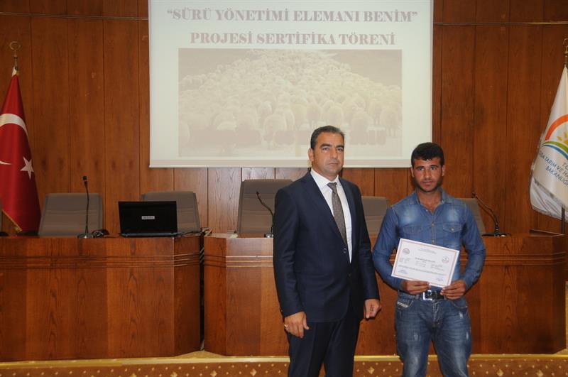 Sertifika törenlerinde konuşma yapan İl Müdürümüz Ahmet SÖĞÜT, Bakanlığımızca bu eğitimi alan kişileri istihdam eden küçükbaş hayvan işletmelerine yıllık 5.000 TL hayvancılık desteklemesinin yapılacağını ve belge sahibi olan kişilerin Bakanlığımızın çeşitli program ve projelerden yararlanmada öncelikli olacaklarını belirtti. SÖĞÜT, “Hayvan sahipleri, çobana güvendikleri için kendileri açısından ekonomik değeri olan ve geçimlerini sağladıkları hayvanlarını teslim ederler” diyerek, sürü yönetimi elemanı olmanın güvenilir insan olmak demek olduğunu ifade etti. Ayrıca bu proje ile sürü yöneticisi elemanlarına meraların düzgün otlatılması, sürü güvenliğinin sağlanması, hayvan ıslahının sağlanması ve hayvan hastalıklarında ilk müdahalelerin nasıl yapılacağı konularında kurs verildiğini söyledi. Çobanlığın peygamber mesleği olduğunu hatırlatan SÖĞÜT konuşmasının sonunda, kursların düzenlenmesinde emeği geçen herkese teşekkür etti.