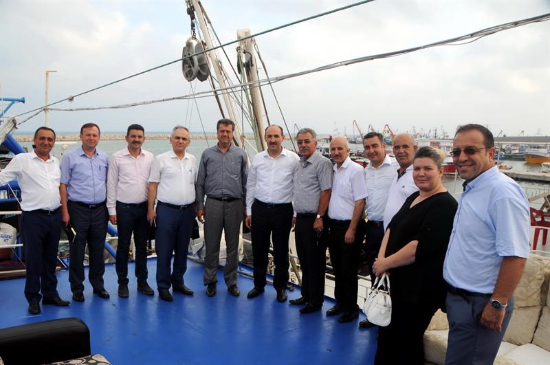 Gıda Tarım ve Hayvancılık İl Müdürü Muhammet Ali TEKİN ile İl Müdür Yardımcıları, İlçe Müdürleri ve Şube Müdürleri, Karataş barınağında bulunan balıkçı gemilerine takılan Balıkçı Gemilerini İzleme Sistemi (BAGİS) cihazını inceledi.