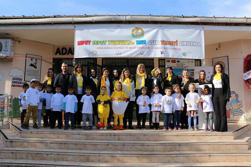 TÜBİTAK 4004 Doğa Eğitimi ve Bilim Okulları kapsamında Adana İl Tarım ve Orman Müdürlüğü tarafından yürütülen "Sepet Sepet Yumurta, Her Gün Yemeyi Unutma" isimli projenin ilk etabı olan Adana Eczacılar Ana Okulu etkinlikleri tamamlandı. İlk etabın kapanış töreni Yüreğir İlçe Milli Eğitim Müdürü Mehmet KILINÇ, Yüreğir İlçe Milli Eğitim Şube Müdürü Selçuk TAŞYÜREK, Adana İl Tarım ve Orman Müdürlüğü Koordinasyon ve Tarımsal Veriler Şube Müdürü Birsen ERGÜN, Çukurova Üniversitesi Tufanbeyli Meslek Yüksek Okulu Müdürü Fatma YENİLMEZ, Adana Eczacılar Ana Okulu Müdürü Fazilet DEVECİ, Abdullah Öngen Ana Okulu Müdürü Zübeyde CÖMERT, projede yer alan eğiticiler ile Ana Okulu öğrenci ve velilerinin katılımıyla gerçekleştirildi.