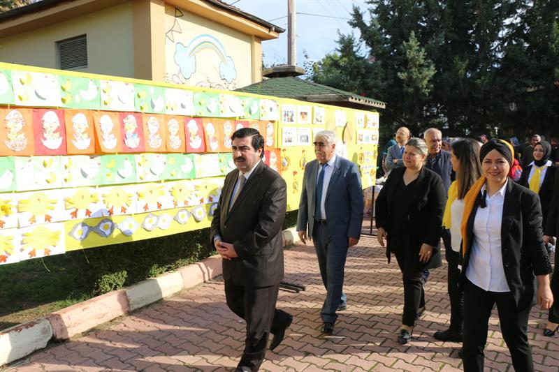 Konuşmanın ardından çocukların hazırladığı sergi gezilerek, konuklara çeşitli ikramlarda bulunuldu.
