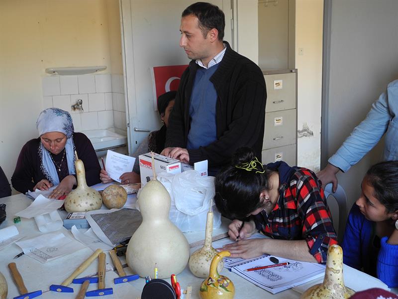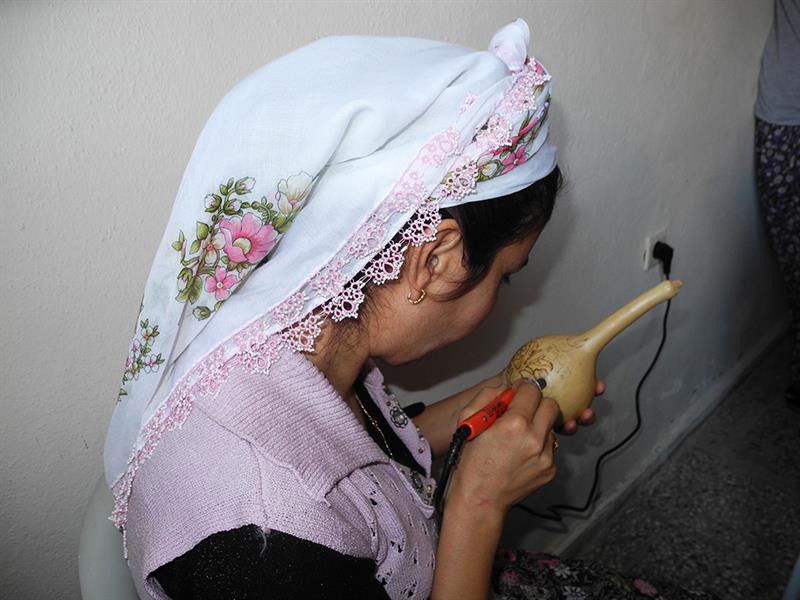Proje kapsamında Karaisalı İlçesi Durak Köyünde gerçekleştirilen kurs, boya ve ahşap eğitmeni ile kabak oyma ustası eğitmeni gözetiminde, 10 kursiyer kadın çiftçimizin katılımıyla başladı. Ayrıca köydeki projeye dahil olmayan diğer kadınların da kursa ilgi göstermeleri dolayısıyla kurs katılımcı sayısı arttı.