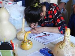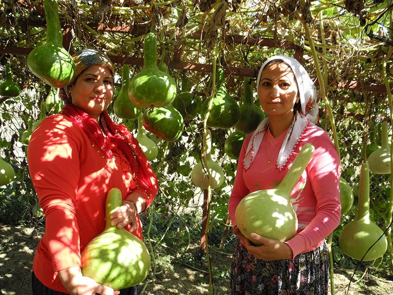 Projenin birinci ayağında su kabakları, kadın çiftçilerimiz tarafından yetiştirilerek, yetişen kabakların kurutulma işlemleri devam ediyor. Projenin ikinci ayağında ise kabaklarla boya işlemleri ve abajur işleme sanatı ile ilgili eğitmenlerin kursiyerlere ilk bilgi vermesiyle birlikte, kursiyerler desen çizimlerini yürütmeye başladılar.